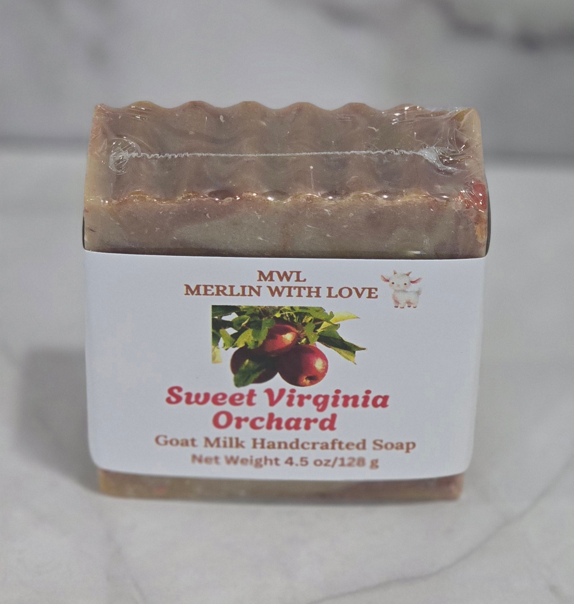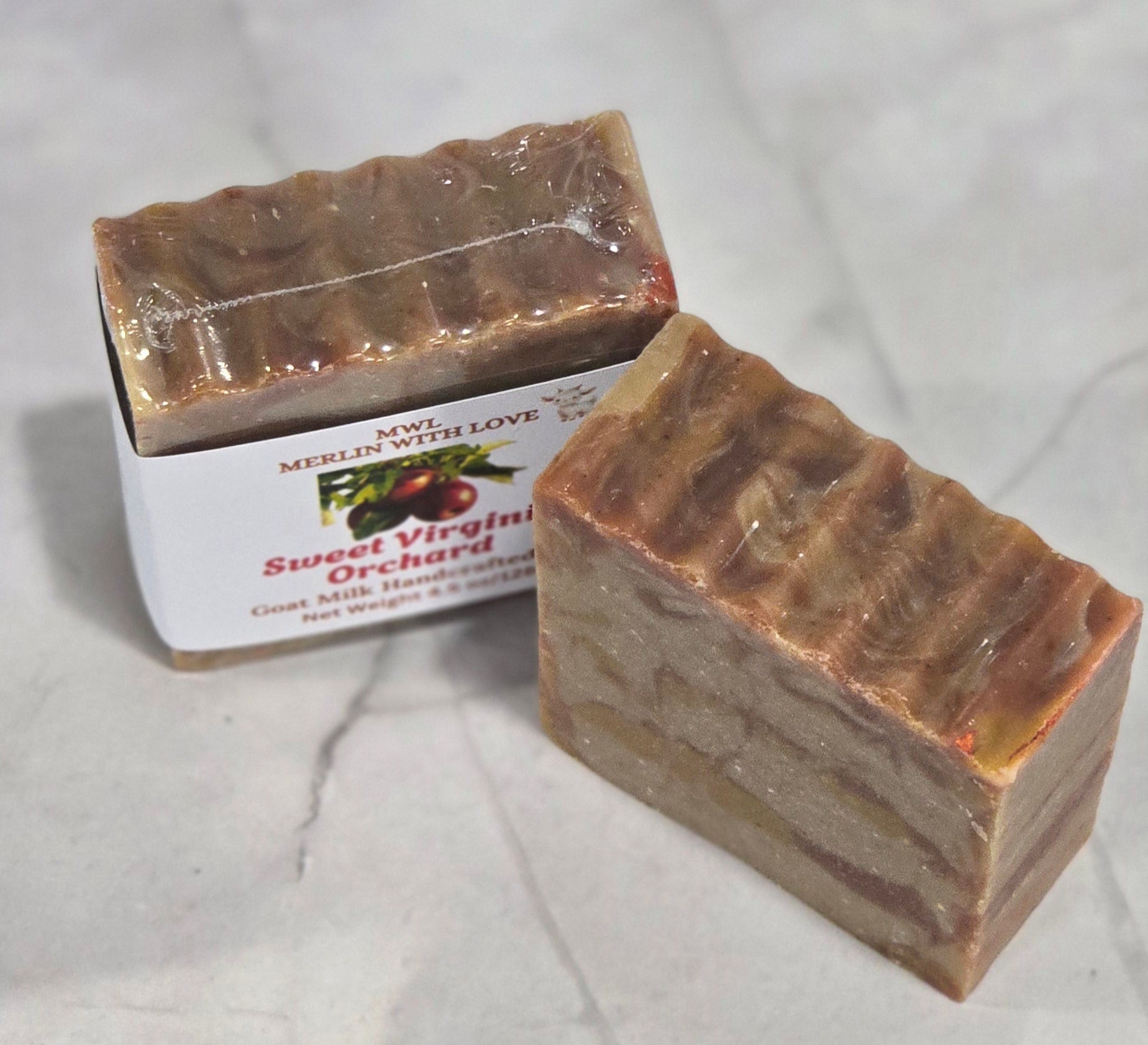 Inspired by the rolling hills and orchard-lined landscapes of Virginia, this handcrafted soap captures the heart of homegrown comfort. Made with real organic apple purée, goat milk, and a drizzle of honey, it’s a creamy bar that evokes the scent of sweet harvest mornings.